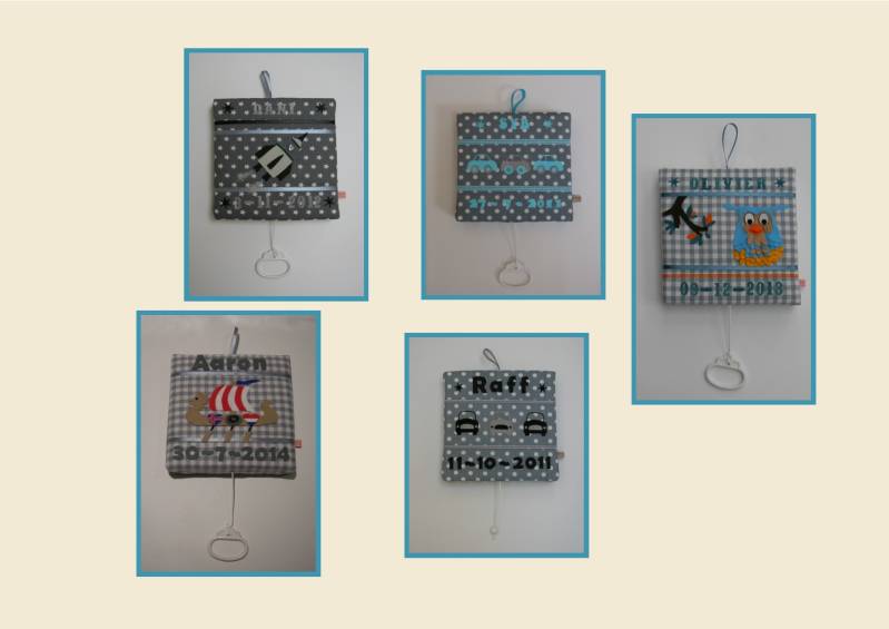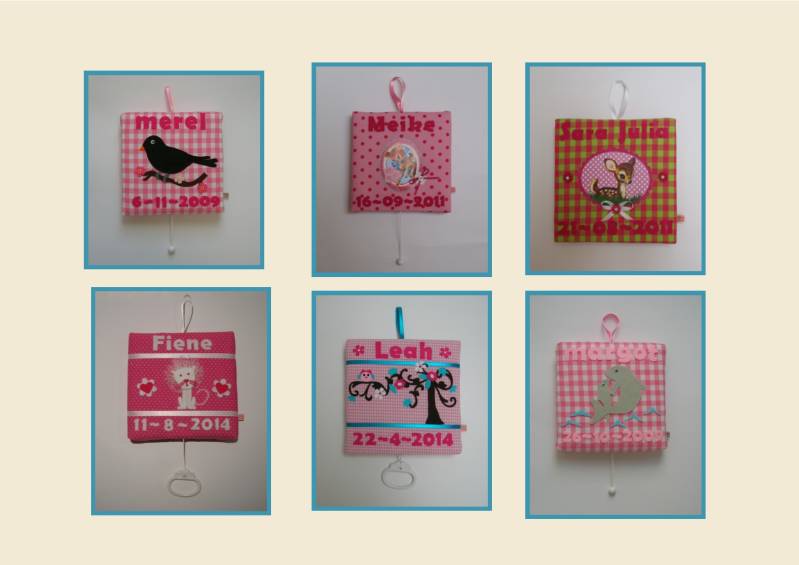 Muziekdoosjes, sommige gebaseerd op geboorte kaartjes……